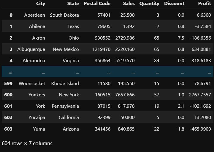 store.groupby(by=['City','State'], as_index=False).sum()